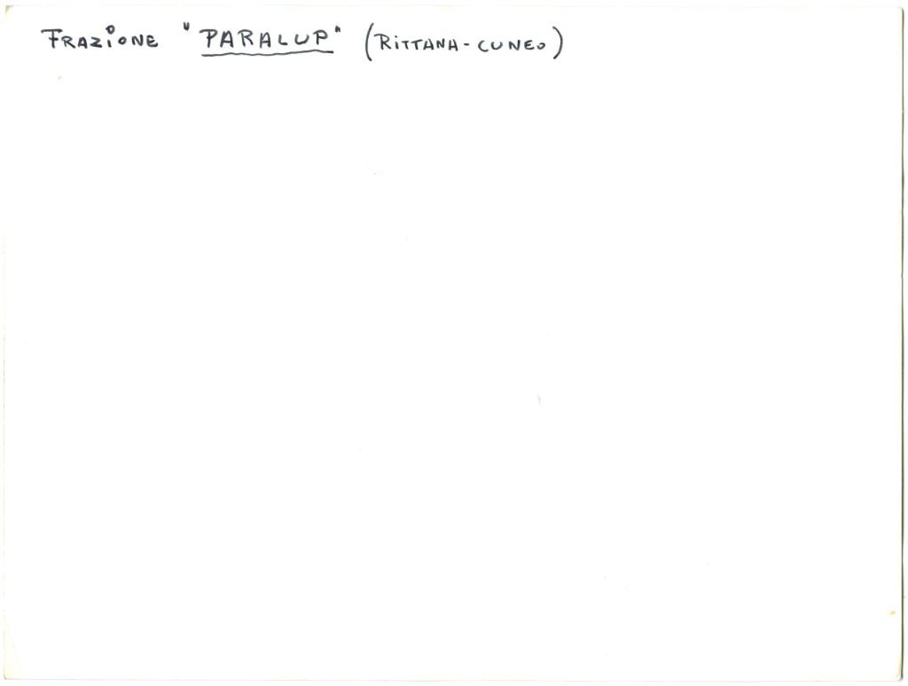 | iscrizioni | sul verso del supporto l'indicazione manoscritta "Frazione "Paralup" [sic] (Rittana - Cuneo)" |