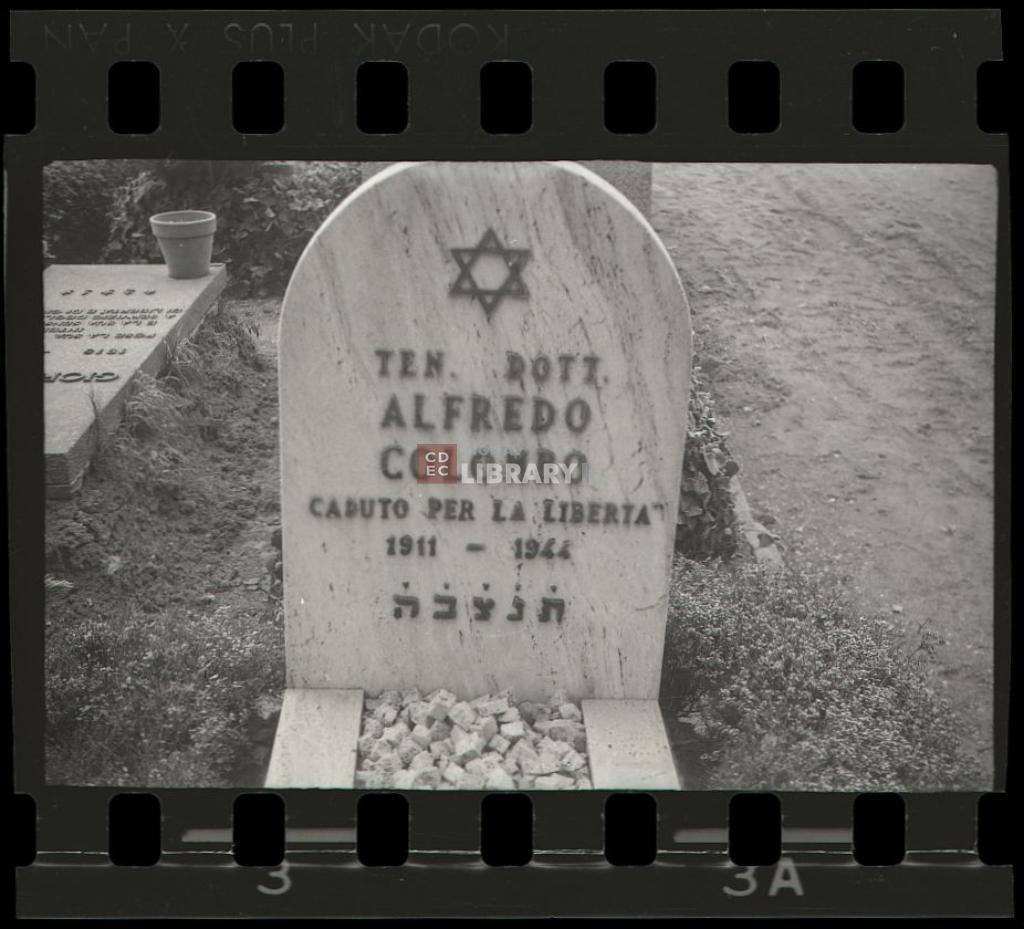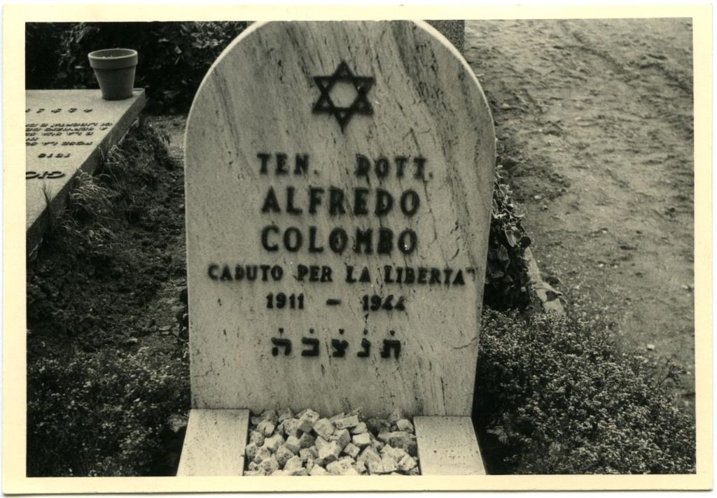 | iscrizioni | nell'immagine sulla lastra la scritta "Ten. Dott. Alfredo Colombo caduto per la libertà 1911 - 1944" e un'iscrizione in ebraico |