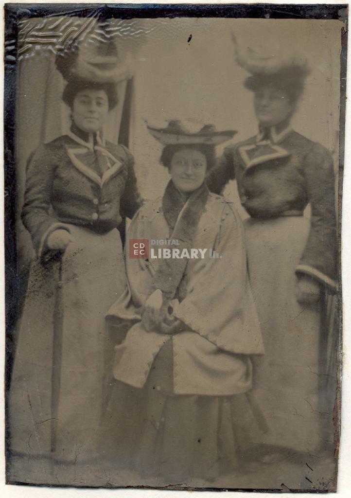 osservazioni | La fotografia è accompagnata dalla seguente didascalia, manoscritta da Ugo Nizza e apposta sulla pagina dell'album: "Mamma/ Olga/ Zia Pia" Nella fotografia si riconoscono a sinistra Anna Levi (poi coniugata Nizza), al centro Olga Foà (poi coniugata Segre) e a destra Pia Levi (poi coniugata Treves) |