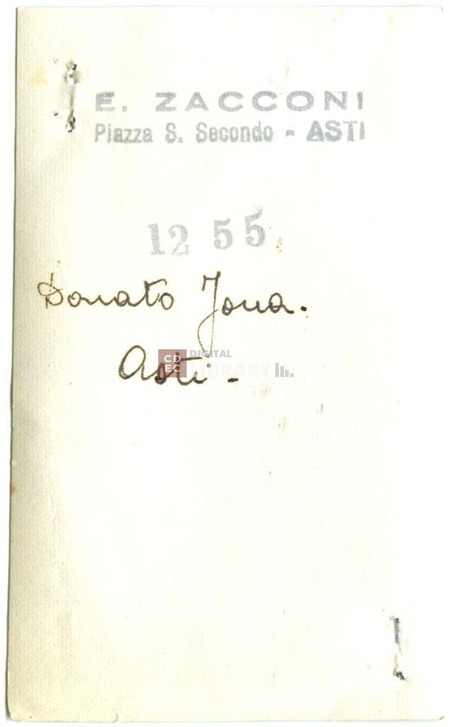 | iscrizioni | sul verso del supporto l'indicazione manoscritta "Donato Jona - Asti" |