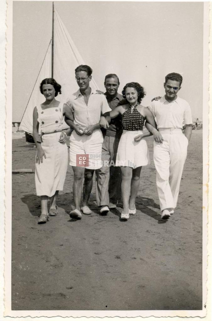 | osservazioni | La fotografia è accompagnata dalla seguente didascalia, manoscritta da Ugo Nizza e apposta sulla pagina dell'album: "Viareggio 1935" Da sinistra Giulia Treves, due uomini non identificati, Elsa Treves e Ugo Nizza |