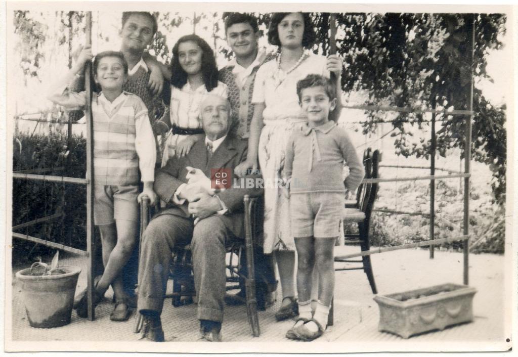 titolo attribuito | Ritratto di Lelio Levi con i nipoti Bruno Levi, Ugo Nizza, Elsa Treves, Alberto Nizza, Giulia Treves e Fausto Levi nella casa di Soragna |
