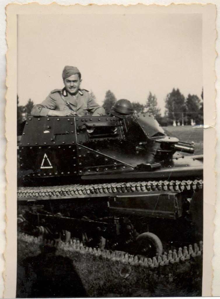 titolo attribuito | Ritratto di Alberto Nizza su un carro armato durante il servizio militare |