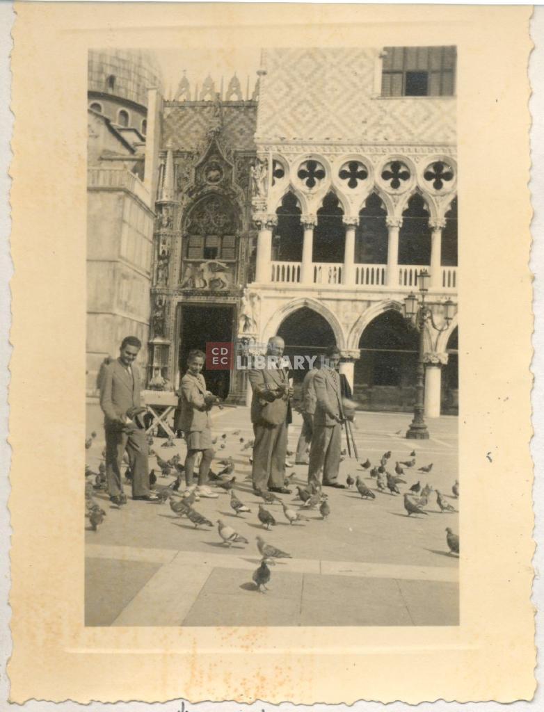 osservazioni | La fotografia è accompagnata dalla seguente didascalia, manoscritta da Ugo Nizza e apposta sulla pagina dell'album: "1937 Venezia/ Fausto zio Renzo Bruno" Nella fotografia si riconoscono in prima fila da sinistra Ugo Nizza, Fausto Levi, Moisè Renzo Levi, Bruno Levi |
