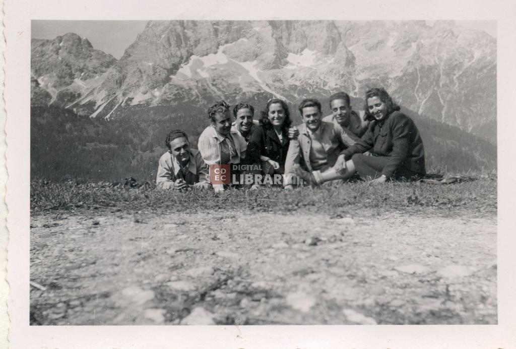 osservazioni | La fotografia รจ accompagnata dalla seguente didascalia, manoscritta da Ugo Nizza e apposta sulla pagina dell'album: "Pecol: Zoldo Alto 1941/ da sin io! - Laura Jacchia - Bruno - Elena De Angeli - Alberto - Fausto - Edmea De Angeli". Da sinistra Ugo Nizza, Laura Jacchia, Bruno Levi, Elena Deangelis, Alberto Nizza, Fausto Levi, Edmea Deangelis |