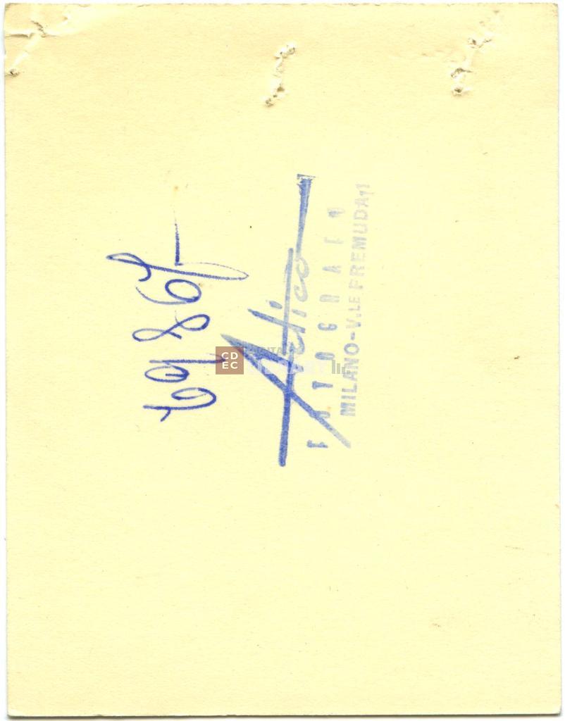 timbri, marchi | sul verso del supporto al centro il timbro a inchiostro con il marchio commerciale del fotografo |