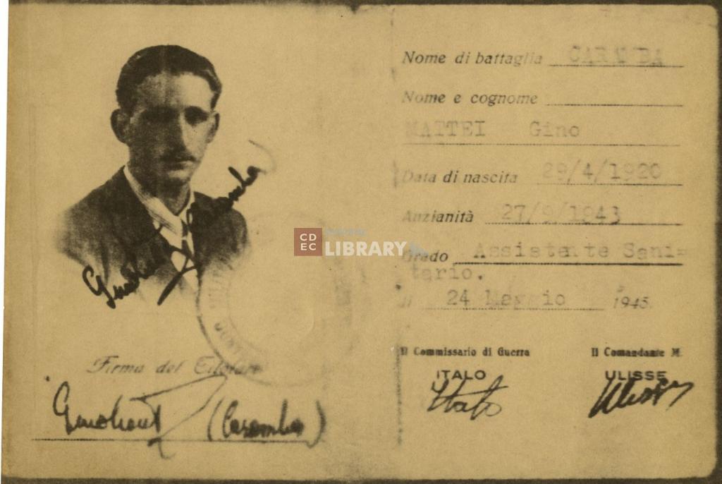 | titolo attribuito | Tessera del Corpo Volontari della Libertà di Gino Mattei |