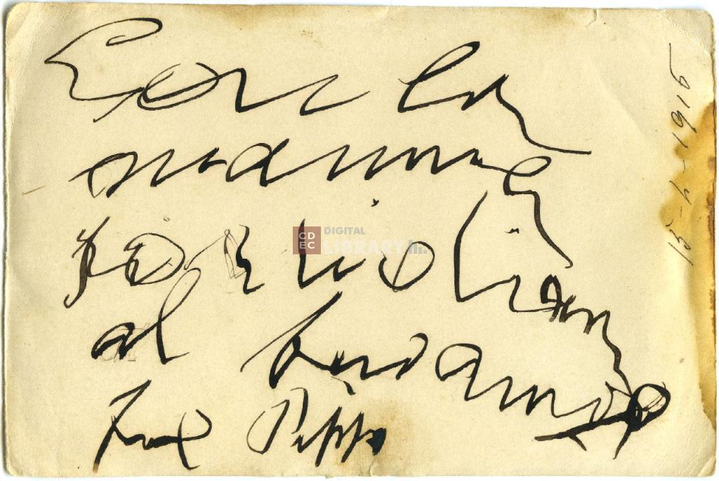 | iscrizioni | sul verso del supporto la dedica "Con la mamma [...] tuo Pippo" e la data manoscritta a destra "15-4-1916" |