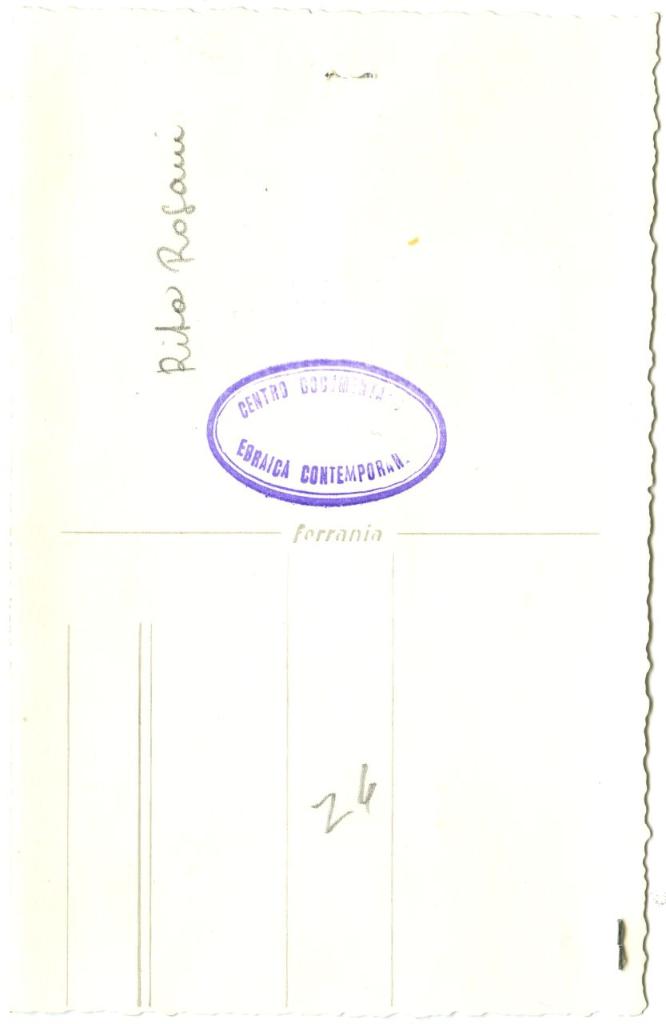 | timbri, marchi | sul verso del supporto il timbro ovale a inchiostro blu con la scritta "Centro Documentazione Ebraica Contemporanea" |