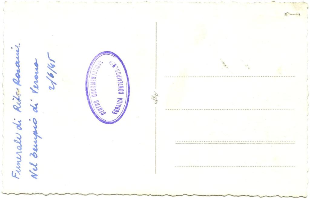 | iscrizioni | sul verso del primo supporto l'indicazione manoscritta "Funerale di Rita Rosani/ Nel Tempio di Verona 2/6/45" - sul verso del secondo supporto l'indicazione manoscritta "Al Tempio di Verona" |