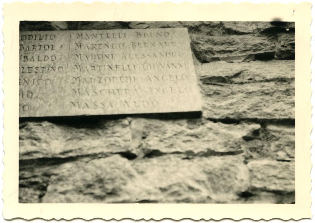 | notizie storico-critiche | Sulla lapide si possono leggere in ordine alfabetico i nomi dei seguenti partigiani: Mantelli Bruno, Marengo Bernardo, Mandini Alessandro, Martinelli Giovanni, Marzocchi Angelo, Maschera Angelo, Massa Aldo |
