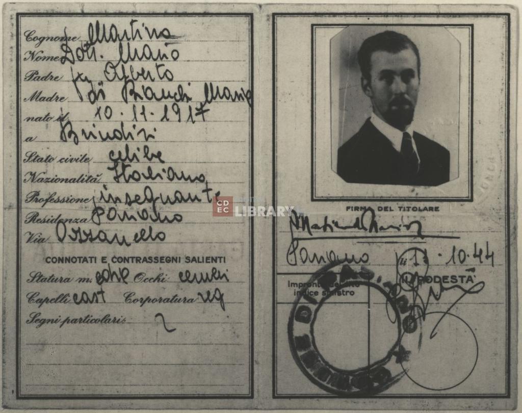 | titolo attribuito | Carta d'identità con false generalità di Marcello Morpurgo (alias Mario Martino) |