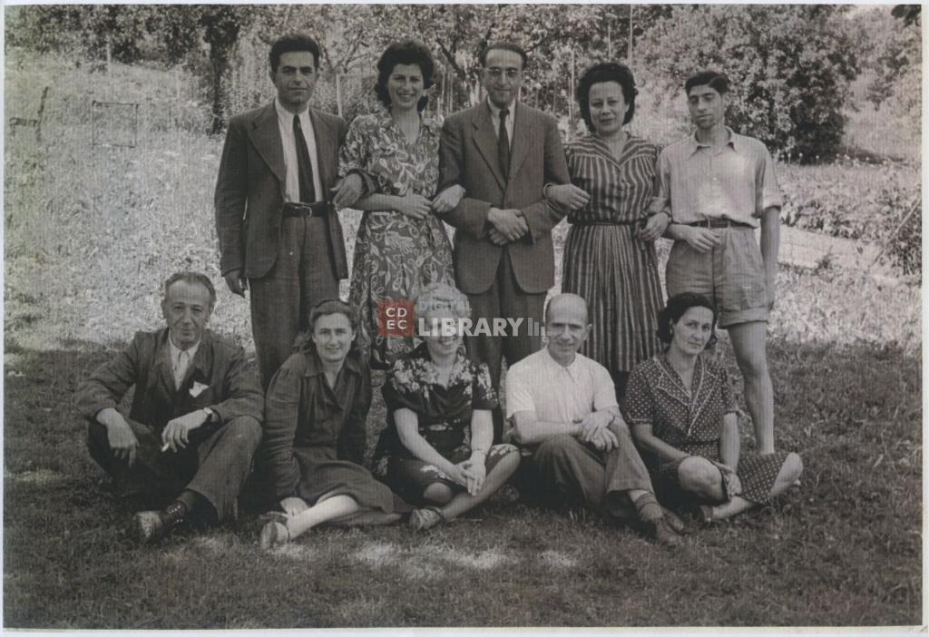 osservazioni | Nella fotografia si riconoscono in piedi da sinistra Rav Mayer Chaim Relles, Vittoria (Rina) Brunner (poi coniugata Grosser), Bernardo (Berl) Grosser, Wanda Sonino, Gian Galeazzo Terni |