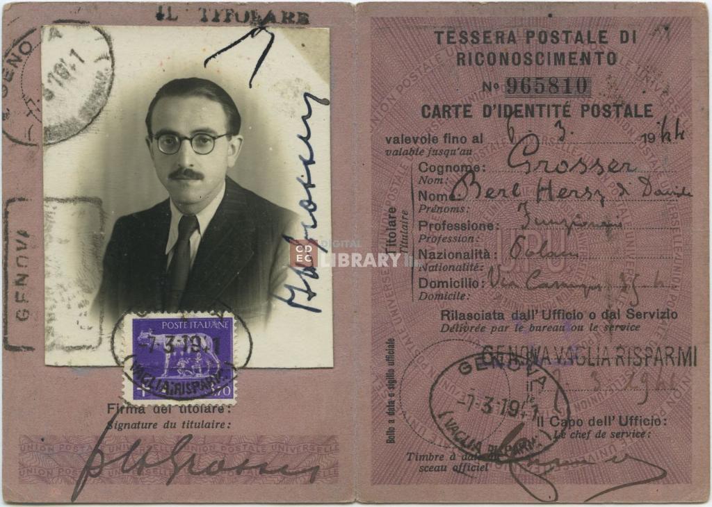 titolo attribuito | Tessera postale di riconoscimento di Grosser Berl Hersz |