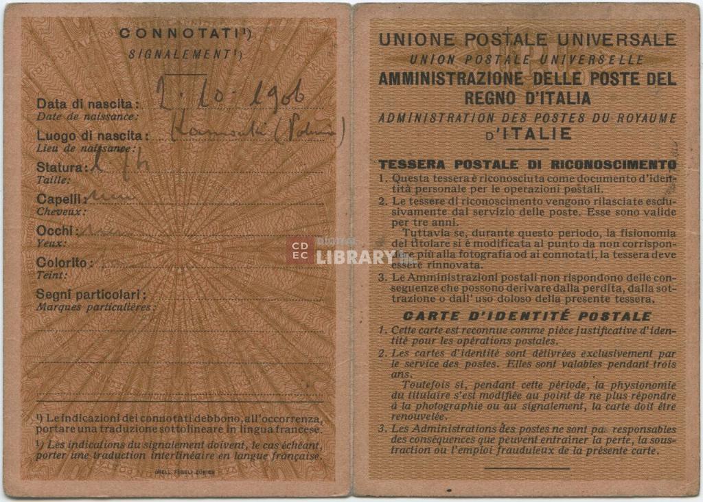 indicazioni sull'oggetto | La stampa fotografica รจ incollata su un documento di riconoscimento |