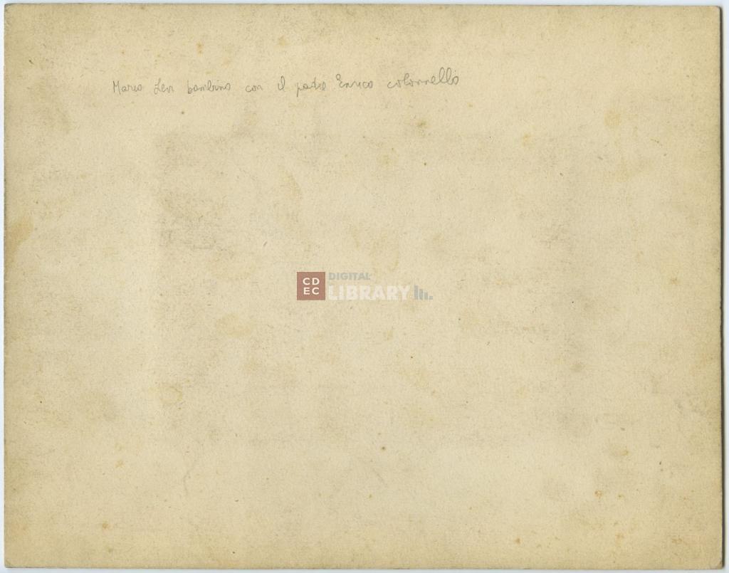 | iscrizioni | sul verso del supporto secondario l'indicazione manoscritta "Mario Levi bambino con il padre Enrico colonnello" |