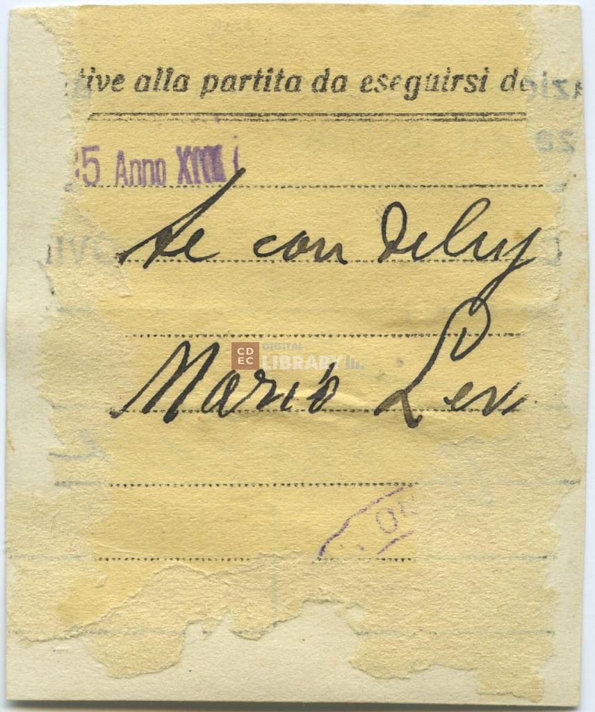 | iscrizioni | sul verso del supporto secondario l'indicazione manoscritta "[...] Mario Levi" |