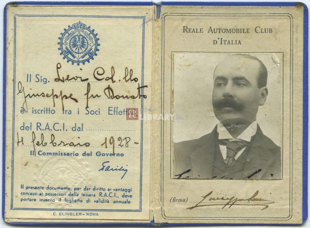 | titolo attribuito | Tessera del Reale Automobile Club d'Italia del Colonnello Giuseppe Enrico Levi |