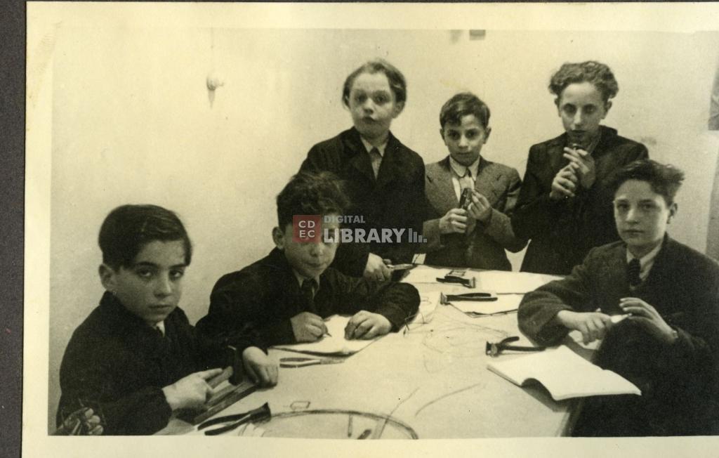 titolo attribuito | Lezione di applicazioni tecniche degli allievi in una classe elementare della scuola ebraica di Milano |