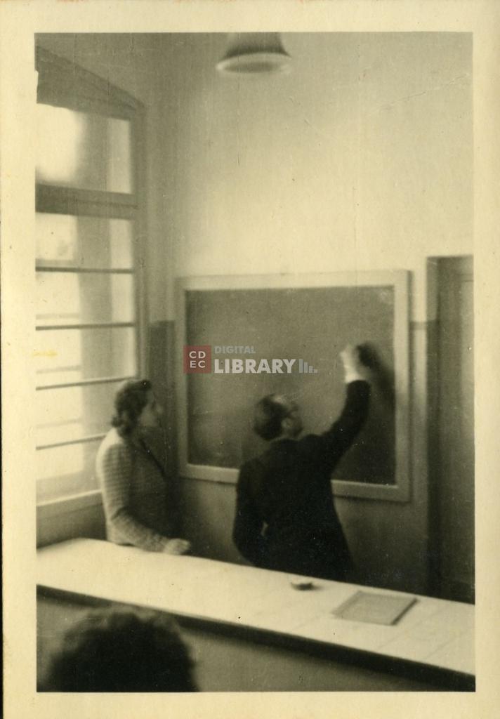 titolo attribuito | Lezione di matematica del prof. Ascoli con Emma Pontremoli al corso universitario di chimica in via Eupili |