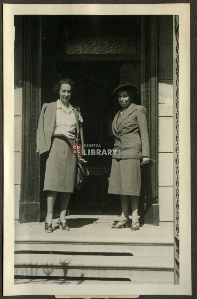 titolo attribuito | Ritratto delle professoresse Matalon e Navarra all'ingresso della scuola ebraica di Milano |