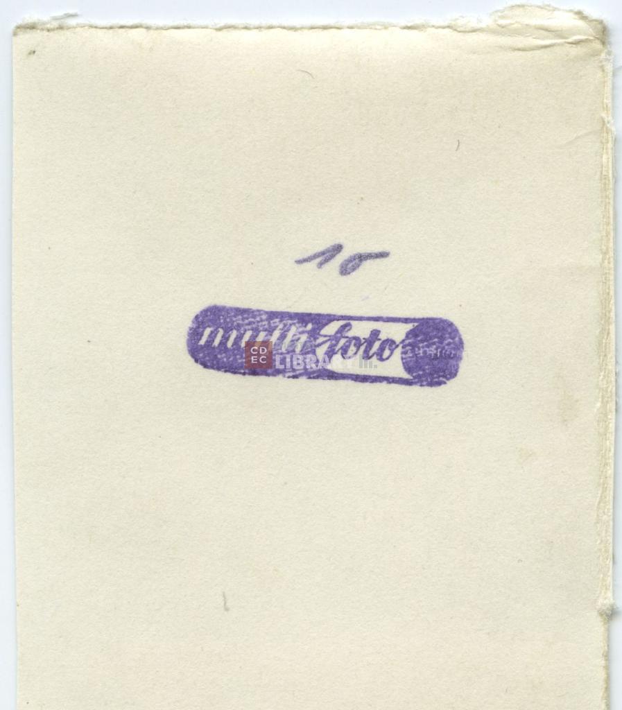 timbri, marchi | sul verso del supporto il timbro con il marchio commerciale dello stampatore "Multifoto" |
