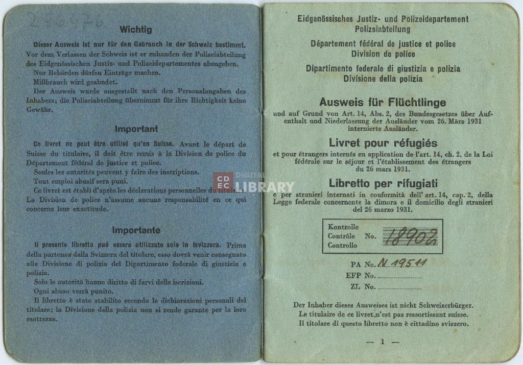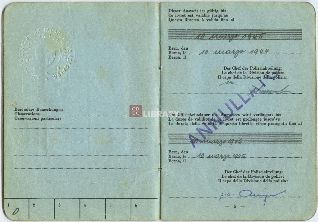 notizie storico-critiche | Il Libretto per rifugiati fu emesso a Berna (Svizzera) il 10 marzo 1944 |