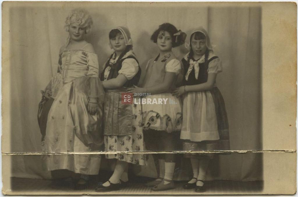 titolo attribuito | Ritratto di Rina Brunner con tre amiche in maschera per la festa di Purim a Trieste |