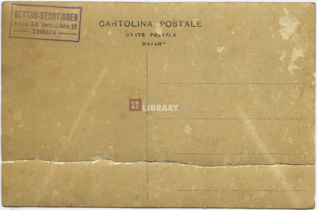 timbri, marchi | sul verso del supporto in alto a sinistra il timbro a inchiostro blu con il marchio commerciale del fotografo |