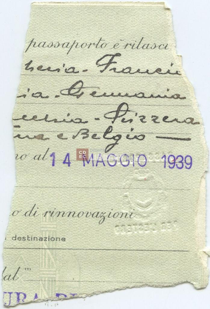 iscrizioni | sul verso del supporto secondario le indicazioni lacunose di quanto riportato sul Passaporto "[...] Francia [...] Germania [...] Svizzera [...] Belgio" |