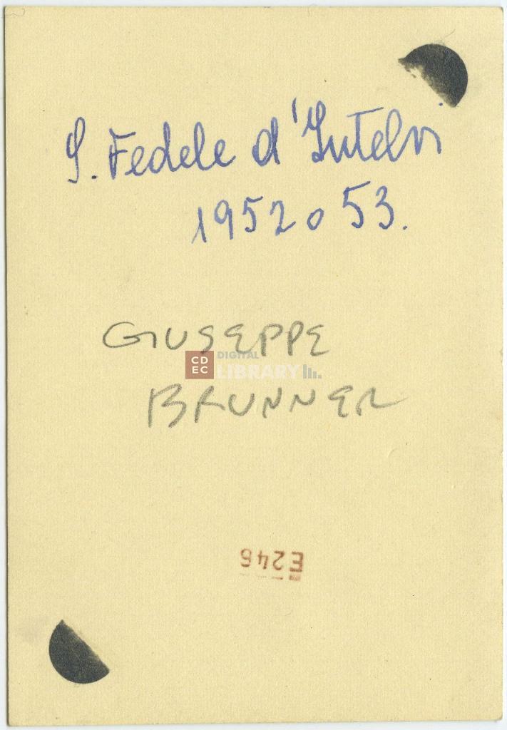 iscrizioni | sul verso del primo supporto l'iscrizione a penna "S. Fedele d'Intelvi 1952 o 53" e a matita "Giuseppe Brunner" - sul verso del secondo supporto un'etichetta con la scritta "Giuseppe (Pino) Brunner" |