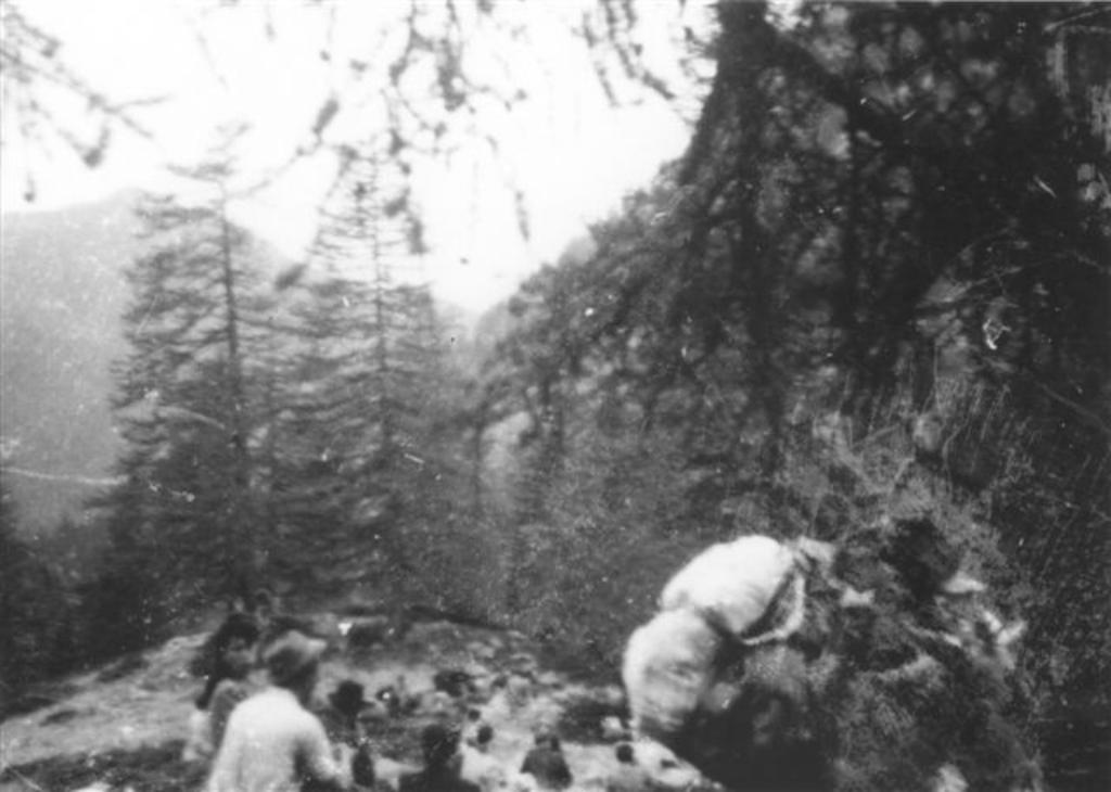 | notizie storico-critiche | Tra l'8 e il 13 settembre 1943, per salvarsi dai nazisti, centinai di famiglie di ebrei fuggirono da Saint-Martin-Vésubie (Francia) all'Italia seguendo due strade. Carl (Charles) Roman con la madre Marianne Uhrmacher e lo zio Franz Edelschein (che sarà poi deportato ad Auschwitz) decisero di intraprendere il cammino del Colle Ciriegia, che li portò al villaggio Le Boréon (1470 m.), per poi continuare la salita superando il Lac de Cerisè (2227 m.) fino al valico tra le cime Ciriegia e Mercantour (2551 m.); la discesa avvenne lungo i sentieri di caccia del re, attraverso Pian della Casa (1743 m.), passando dalle Terme di Valdieri (1386 m.) per arrivare a Valdieri (770 m.), in provincia di Cuneo. Durante la marcia Carl e Marianne scattarono alcune fotografie con un apparecchio fotografico Contax, che la madre aveva portato con sé da Vienna. Questa fotografia fu intitolata da Charles Roman "Sempre avanti". Un'altra copia del documento fu donata da Charles Martin Roman all'archivio fotografico dell'United States Holocaust Memorial Museum di Washington (U.S.A.) nel 1998 |