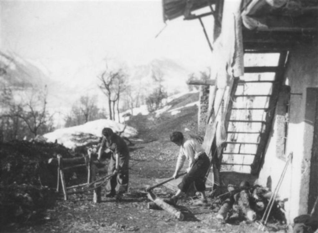 | titolo attribuito | Due uomini intenti a spaccare la legna per cucinare nel rifugio nella frazione San Lorenzo in Valle Stura |