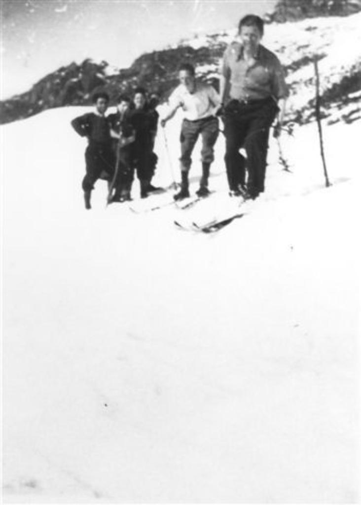 | titolo attribuito | Ritratto dell'istruttore Karl Tepper con altri rifugiati ebrei durante una lezione di sci sul versante nord della Valle Stura sopra Rialto |