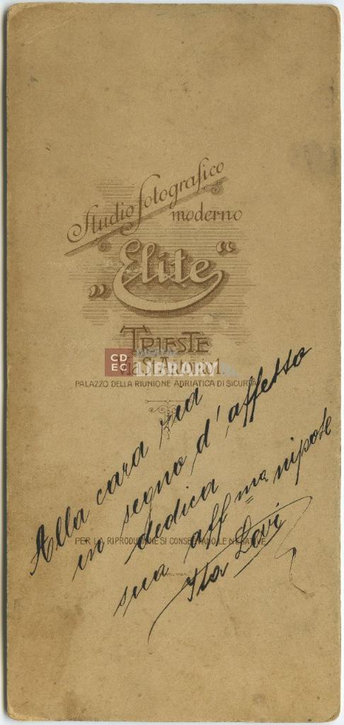 iscrizioni | sul verso del supporto secondario la dedica "Alla cara zia in segno d'affetto dedica sua aff.ma nipote Ita Levi" |