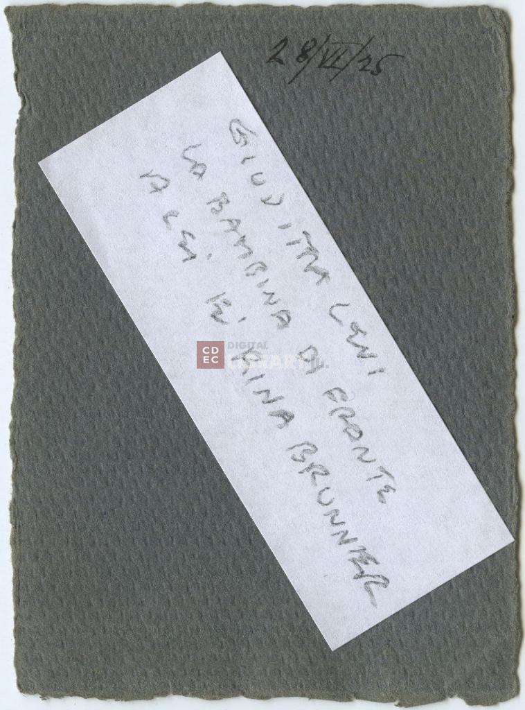 iscrizioni | sul verso del supporto secondario la data manoscritta "28/VI/25" e un'etichetta con l'indicazione "Giuditta Levi/ la bambina di fronte a lei รจ Rina Brunner" |