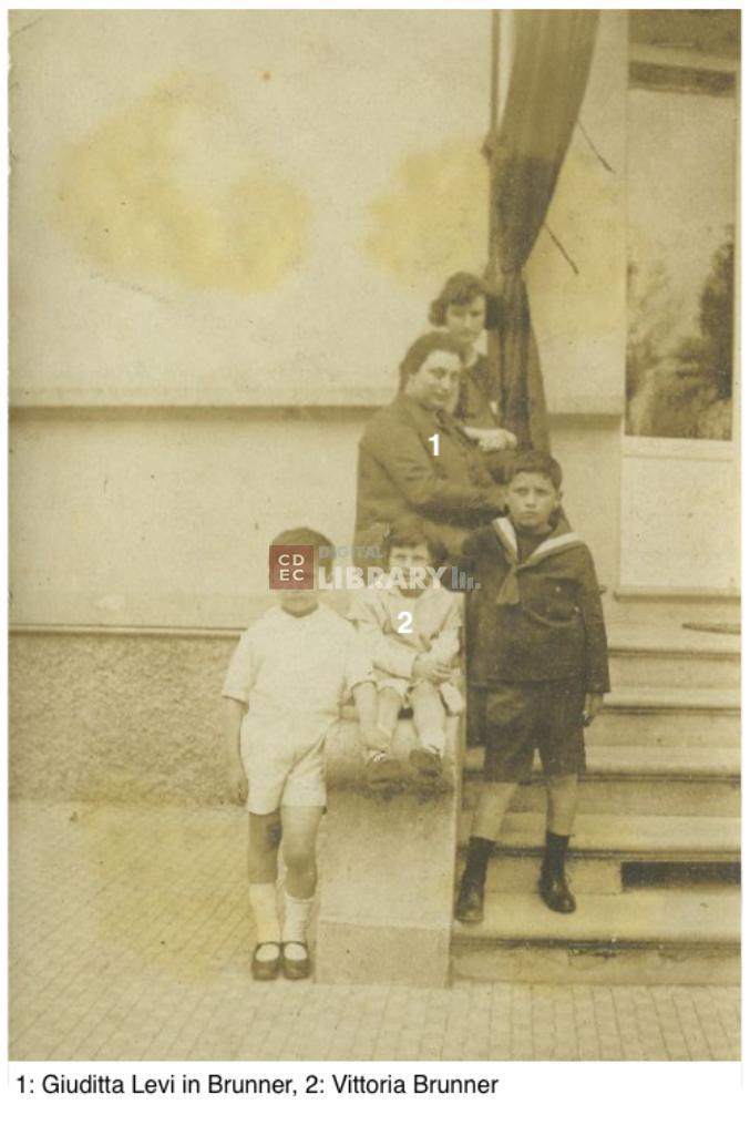 osservazioni | Nella fotografia si riconoscono 1: Giuditta Levi in Brunner e 2: Vittoria (Rina) Brunner (poi coniugata Grosser) |