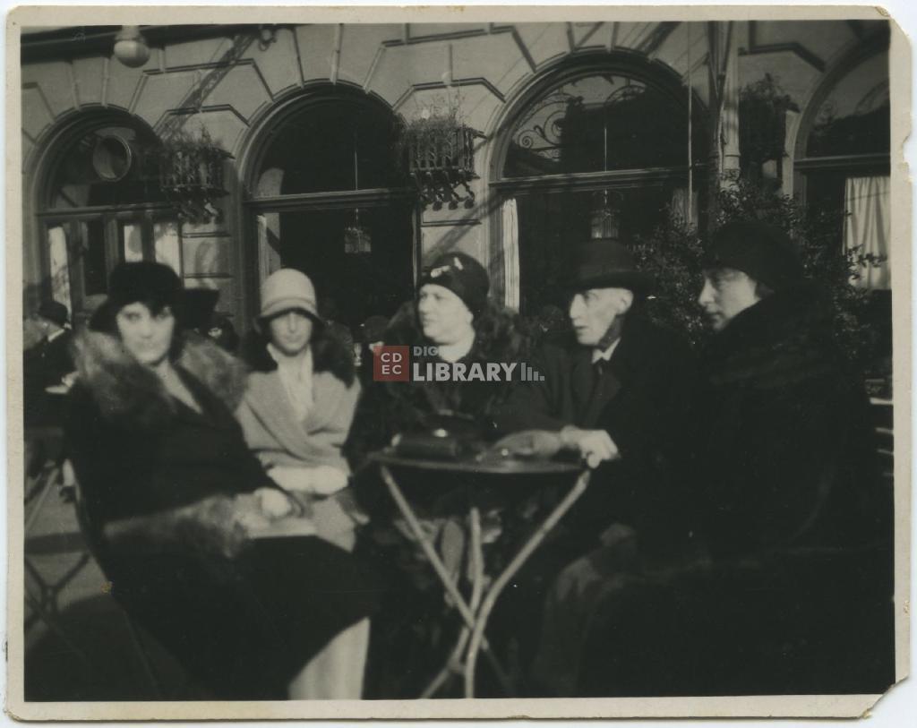titolo attribuito | Ritratto di Giuditta Levi in Brunner con i genitori Girolamo ed Elvira Levi e due signore al Caffè degli Specchi a Trieste |