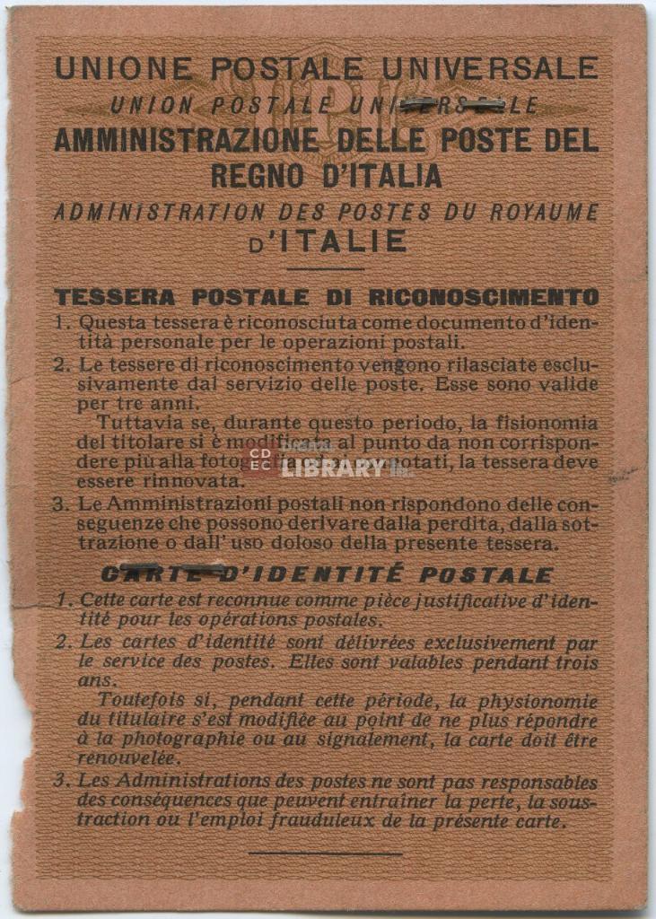 notizie storico-critiche | La fotografia รจ incollata sulla Tessera postale di riconoscimento lacera |