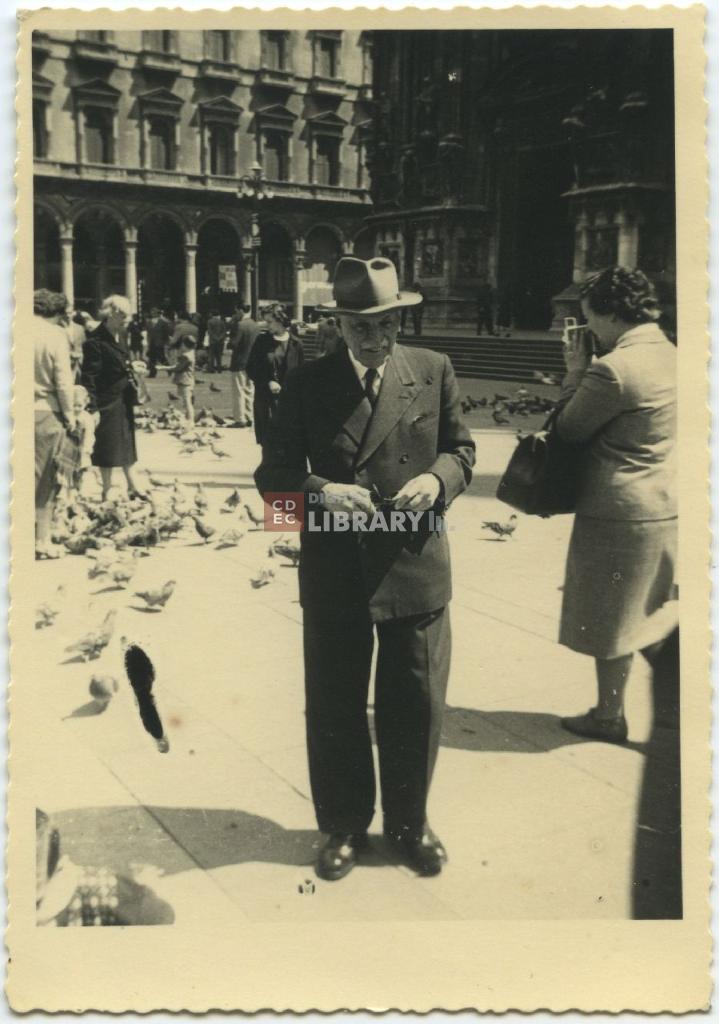 titolo attribuito | Ritratto di Alfredo Brunner in piazza del Duomo a Milano |