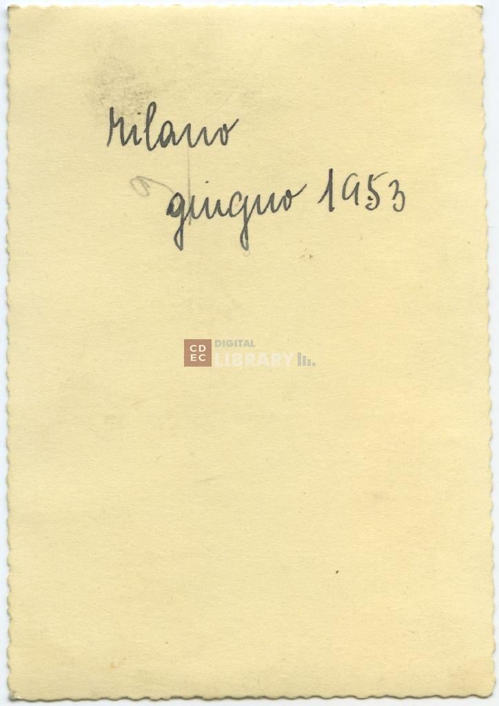 iscrizioni | sul verso del supporto l'indicazione manoscritta "Milano giugno 1953" |