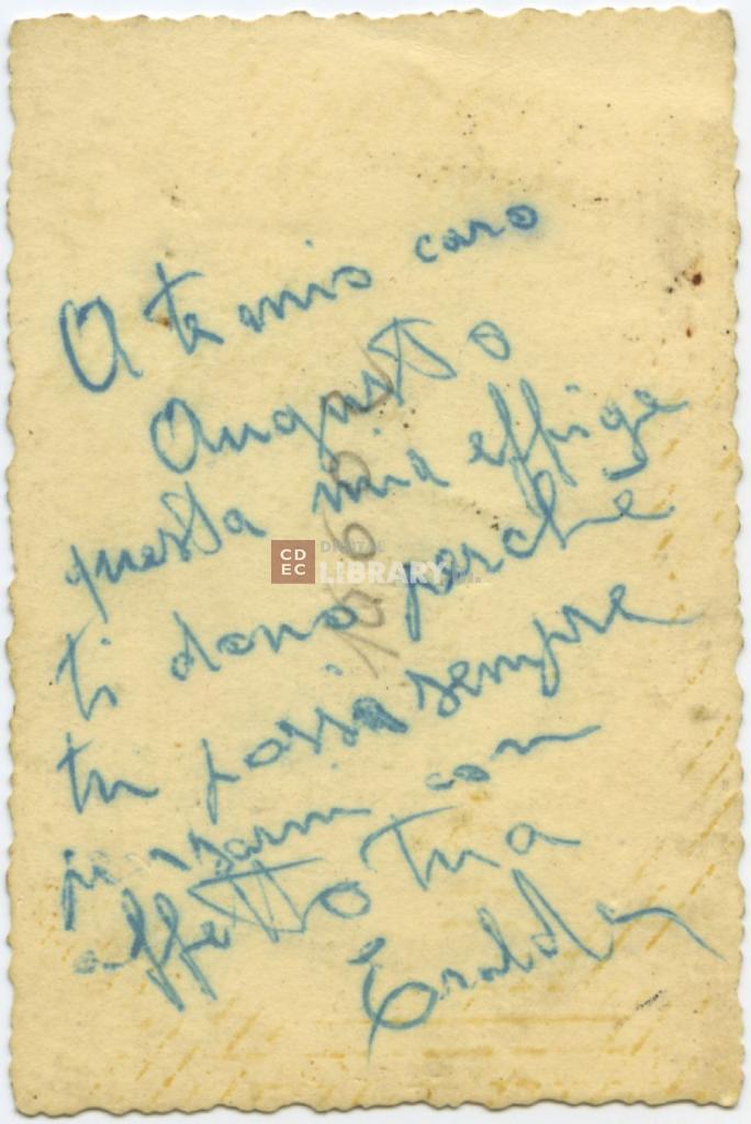 | iscrizioni | sul verso del supporto la dedica "A te mio caro Augusto [Ventura] questa mia effige ti dono perché tu possa sempre pensarmi con affetto tua Eralda" |
