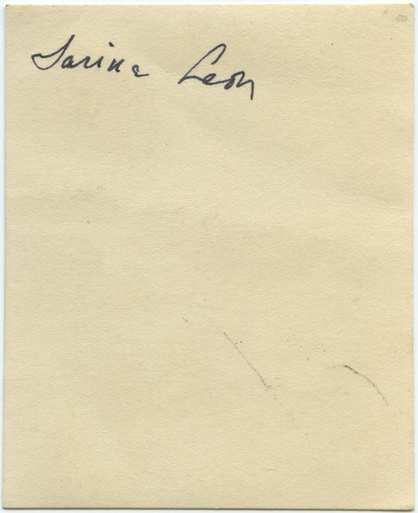 | iscrizioni | sul verso del supporto l'indicazione manoscritta da Rachel Fintz "Sarina Leon" |