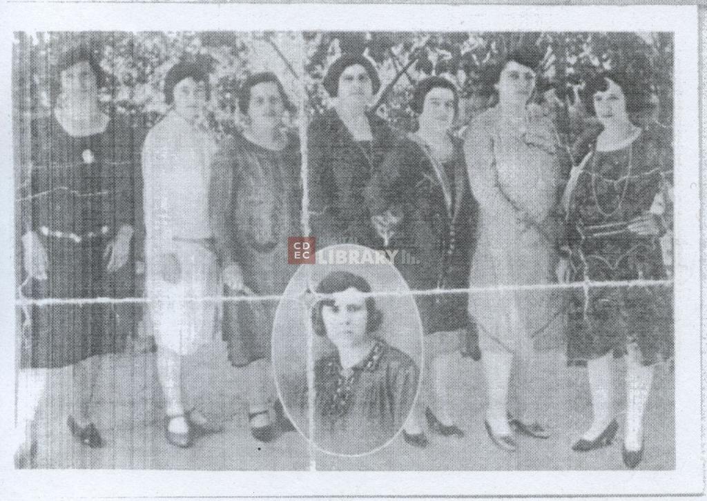 | osservazioni | Nella fotografia si riconoscono in piedi da sinistra a destra Nailè Fresco in Gaon, Tonie Buchbinder in Kahan, Sol Alhadeff in Franco, la signora Surmany, Rosa Alhadeff in Hasson, le signore Menascé (moglie di John Menascé) e Mizraki; nel medaglione centrale la signora Notrica |