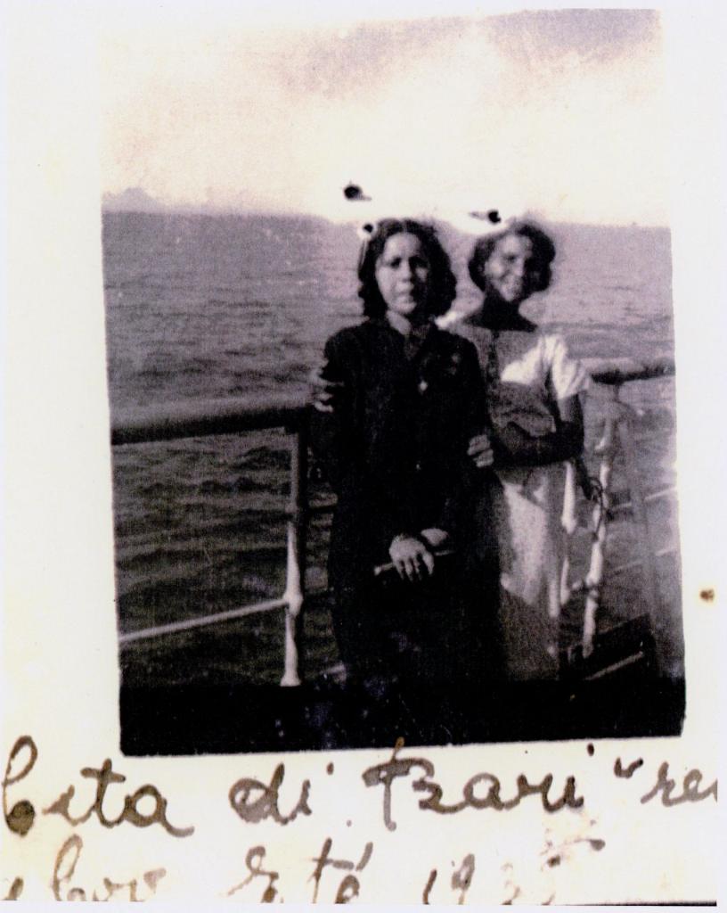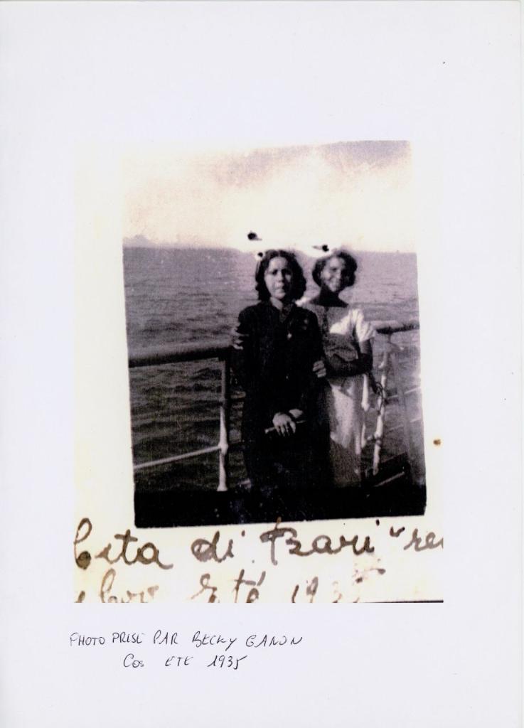 | notizie storico-critiche | Le due donne ritratte nello scatto, riprese sulla nave che da Coo va a Rodi, potrebbero essere Rosa Capelluto (Rose Cappelouto) e la signora Jana, presenti con Becky Ganon sull'imbarcazione, come lei stessa riporta sul suo diario e come si legge negli appunti dattiloscritti che accompagnano le fotografie. |