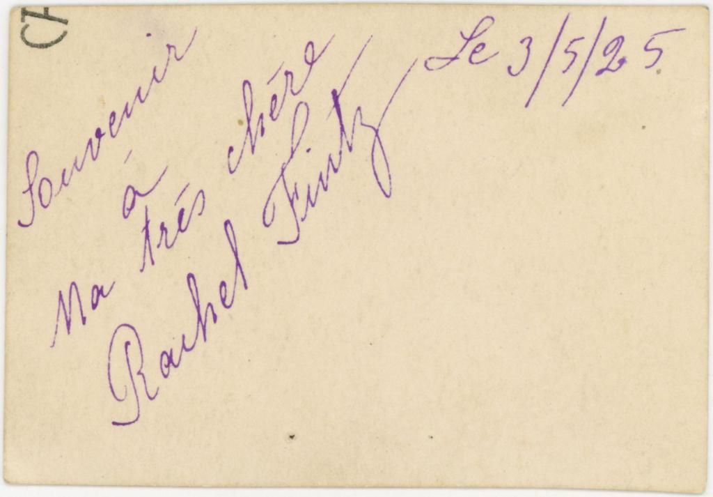 | iscrizioni | nell'immagine l'indicazione manoscritta "Lily/ LS" - sul verso la dedica "Souvenir à ma trés chére Rachel Fintz/ Le 3/5/25" |