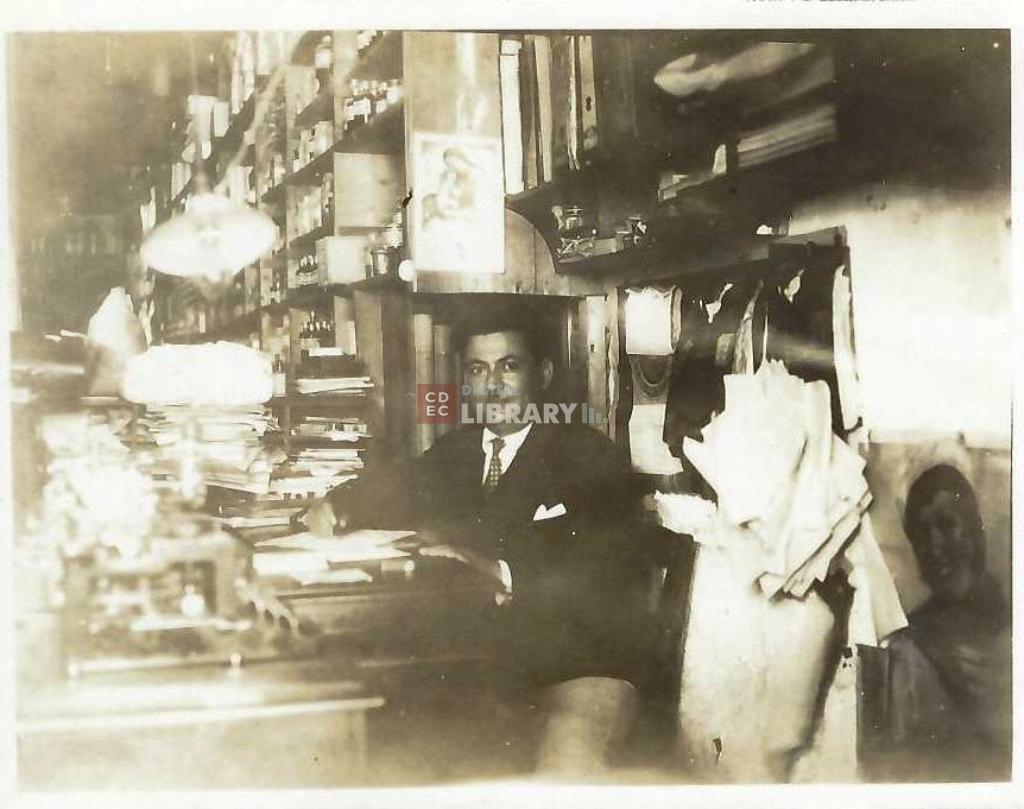titolo attribuito | Ritratto di Mardocheo Menascé seduto al tavolo da lavoro nella sua farmacia nella città vecchia di Rodi |