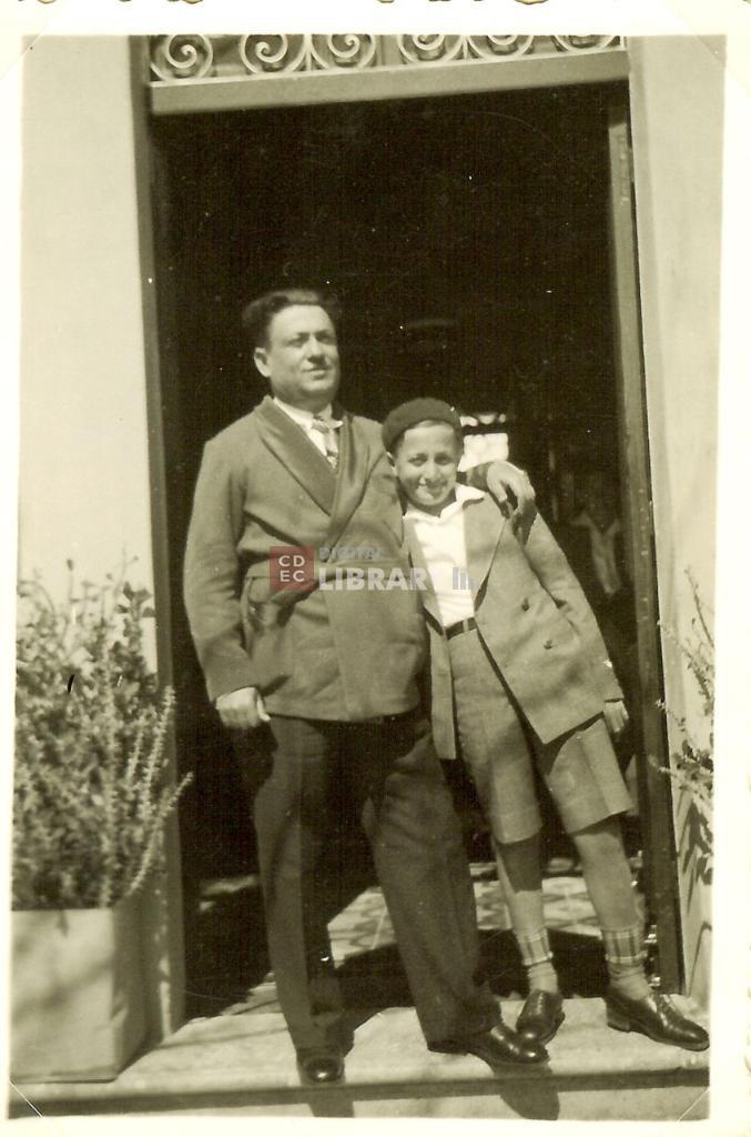 titolo attribuito | Ritratto di Mardocheo Menascé con il figlio Davide all'ingresso della sua casa nella città nuova di Rodi |