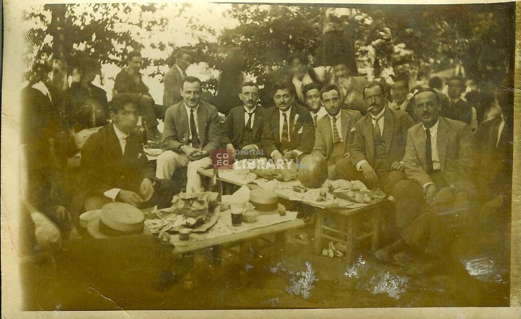 titolo attribuito | Ritratto di Mardocheo Menascé con altri uomini d'affari a un pic nic a Rodi |