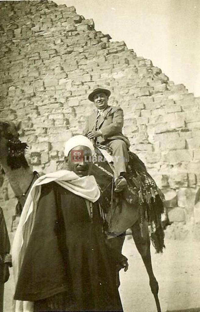titolo attribuito | Ritratto di Mardocheo Menascé con un cammelliere vicino a una piramide in Egitto |